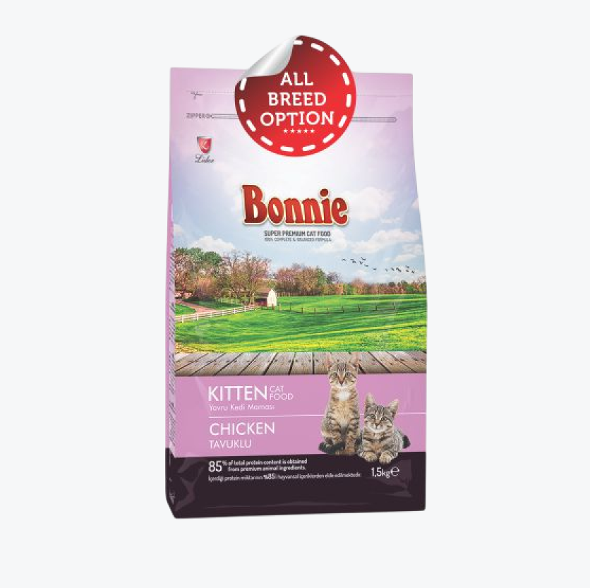 Give your growing kitten the best start in life with Bonnie Kitten Food - Chicken Flavor, now available at Pets Medic! Specially formulated to meet the nutritional needs of kittens, this premium food is made with high-quality chicken protein to support healthy growth, strong bones, and a shiny coat .At Pets Medic, we prioritize your pet’s health and happiness. Order now and give your kitten the nutrition they deserve!