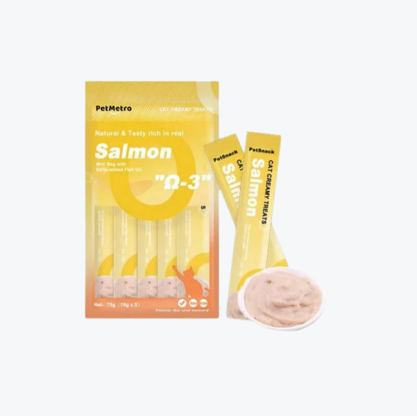 Indulge your feline friend with PetMetro's Cat Creamy Treat in Salmon flavor! Specially crafted for discerning cats, this creamy, smooth treat is packed with the irresistible taste of fresh salmon that will have your kitty coming back for more. Perfect for rewarding your cat or as a delightful snack between meals, it’s made with high-quality ingredients that support overall health and wellbeing. Whether used as a treat, training tool, or a way to bond with your furry companion, PetMetro Cat Creamy Treat provides a tasty and nutritious option that cats love.Treat your cat to something special—available now at PetsMedic!